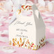 Belles feuilles d'automne audacieuses à l'aquarelle ornent la bordure de cette boîte de faveurs de mariage boho automnal. De superbes nuances de rouge, d'orange et de brun forment les bords botaniques de cette boîte extérieure crème pour vos invités. Un design bohème moderne avec des couleurs vives et amusantes.