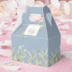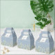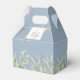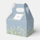 Boîte de faveur de baptême aux feuilles de verdure douce élégantes avec des feuilles délicates à l'aquarelle sur un fond bleu poussiéreux encadrant votre message de remerciement en typographie moderne. Vous pouvez personnaliser avec votre propre message de remerciement au verso. Un moyen parfait de dire merci à vos invités ! Conçu par Thisisnotme©
