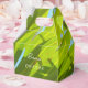 Pensez vert avec des verts frais. Les longs feuilles verts, sur la photo originale de MaeFlowers sur ce Ballotin de style gable sont des feuilles de palmiers soufflant dans la brise. La lumière du soleil met en lumière certaines d'entre elles, ce qui en fait une couleur vert clair. D'autres sont plus vert foncé alors qu'ils se courbent de la branche de l'arbre, jetant des ombres vert citron sur les feuilles au soleil. Des bouts de ciel bleu tropical se rencontrent entre les feuille. Il y a du texte qui est défini pour personnaliser, ou supprimer si vous préférez.
