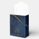 Un arrière - plan d'aquarelle dans les tons du bleu royal à la marine est surmonté d'une abstraite de lignes dorées fines et d'effets lumineux scintillants pour créer les pièces de cette belle suite mariage. Le ballotin mariage "Merci" présenté ici présente également la calligraphie "Merci" ainsi que les noms de la mariée et du marié et la date du mariage. Recherchez ID867 pour voir d'autres pièces et choix de couleurs pour cet ensemble.