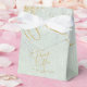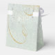 Un arrière - plan d'aquarelle dans les tons vert sauge est surmonté d'une abstraite de lignes dorées fines et d'effets lumineux scintillants pour créer les pièces de cette belle suite mariage. Le ballotin mariage "Merci" présenté ici présente également la calligraphie "Merci" ainsi que les noms de la mariée et du marié et la date du mariage. Recherchez ID867 pour voir d'autres pièces et choix de couleurs pour cet ensemble.