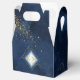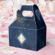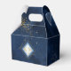 Un arrière - plan d'aquarelle dans les tons du bleu royal à la marine est surmonté d'une abstraite de lignes dorées fines et d'effets lumineux scintillants pour créer les pièces de cette belle suite mariage. La boîte de faveur de mariage montrée ici présente également un cadre en forme de losange dégradé pour tenir les initiales de la mariée et du marié et la date du mariage. Recherchez ID867 pour voir d'autres pièces et choix de couleurs pour cet ensemble.