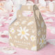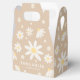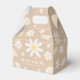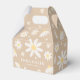 Boîtes de faveur dans le style boho avec œuvre d'art florale de marguerite et couleur beige.