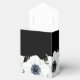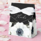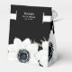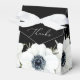 Les boîtes de faveur de style tente avec une fermeture à ruban présentent des fleurs et des feuilles d'anémone noires et blanches à l'aquarelle élégantes sur fond noir et vos détails en lettrage chic. ARTICLES correspondants dans notre magasin.