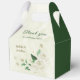 Belle boîte de cadeau de mariage romantique avec des fleurs blanches ivoire et quelques jolies feuilles vertes .