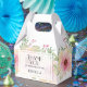 De belles fleurs roses et crème à l'aquarelle et des feuilles élégantes mettent en valeur ces boîtes de faveur de fête en forme de pignon. ARTICLES CORRESPONDANTS dans notre magasin.