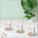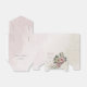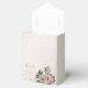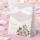 Boîte de cadeau de mariage unique avec des fleurs roses romantiques et champagne et des feuilles vertes.