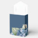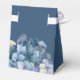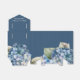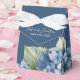 Cette boîte cadeau de mariage romantique présente un design aquarelle floral avec des hortensias bleus sur un fond bleu marine. Des bouquets délicats de fleurs d'hortensia sont représentés autour de la partie inférieure.