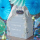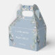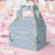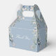 Élégante boîte de faveur de mariage bleu poussiéreux avec de jolies fleurs sauvages aquarelles encadrant vos noms et date spéciale dans une typographie moderne. Vous pouvez personnaliser avec votre propre message de remerciement au verso. Un moyen parfait de dire merci à vos invités ! Conçu par Thisisnotme©