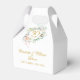 Elégant ballotin d'anniversaire de 50ème mariage doré fleuri avec une jolie guirlande rose avec des noms personnalisés et date spéciale dans la typographie or chic. Vous pouvez également personnaliser avec votre propre message de remerciement sous le couvercle. Une façon parfaite de remercier vos invités ! Conçu par Thisisnotme©