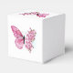 Flower arrangement of pink butterfly with rose Japanese cherry blossoms on white background.