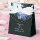 Ces boîtes sont parfaites pour tout couple qui planifie une fête mariage rustique. Le design est composé d'une forêt élégante avec un décor de montagne dans les tons bleus. Le beau design peut être personnalisé pour convenir à votre événement spécial et sera le cadeau/ballotin parfait pour toute fête à thème de pays, y compris : douches nuptiales, fiançailles, wedding showers, fêtes d'anniversaire et bien plus encore.