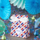 Drapeau français de style tentes personnalisées, avec le mot FRANCE ci-dessous en lettres colorées avec le tricolore français. Une fractale blanche de carrés grossiers peut tenir le nom de votre invité d'honneur ou ajouter une touche personnalisée à votre fête ou événement du 14 juillet. Amusant aussi pour les faveurs lors des réunions de famille.