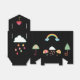 Fun Favor Box W/Umbrellas, Rain & Rainbow. Black Background & Colorful Raindrops Give An Elegant Appearance to The Favor Box.