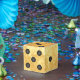 Arrière - plan moderne couleur or accents cet étonnant dice design party de faveur boîte cadeau. Parfait pour les soirées Bunco, Casino ou Vegas.