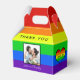 Cette boîte de faveur de mariage rayée arc-en-ciel audacieuse comprend une photo de fiançailles LGBTQ romantique personnalisée pour un couple gay ou lesbien qui aime les boîtes rayées lumineuses et colorées. Personnalisez ce joyeux cadeau de couple LGBT sur les rayures rouge, orange, jaune, vert, bleu et violet.