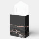 Cette élégante boîte de faveur moderne présente un design d'agate aquarelle noire rehaussé de faux strass or rose. Personnalisez-le avec les noms des mariés en écriture manuscrite rose sur un grand esperluette gris, ainsi que la date du mariage en dessous.