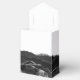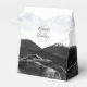 Cet élégant ballotin moderne présente un design d'agate d'aquarelle noire, orné d'une fausse parties scintillant argentée. Personnalisez-le avec les noms de la mariée et du marié dans le script d'écriture manuscrite gris fusain sur une grande esperluette grise sur un arrière - plan blanc, avec la date du mariage ci-dessous.