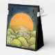 Elégante pierre de taille topaze, paysage saisonnier coloré avec soleil jaune, vagues de la mer dans des couleurs vives noir, marron, blanc élaboré à partir d'une miniature japonaise antique. Amaterasu fait partie du cycle du mythe japonais et est aussi une divinité majeure de la religion shintoise. Elle est la déesse du soleil, mais aussi de l'univers. Le nom Amaterasu dérivé d'Amateru signifiant "brillant dans le ciel". Le sens de son nom tout entier, Amaterasu-ōmikami, est "le grand Août kami (dieu) qui brille dans le ciel".Car Amaterasu est aussi crédité d'avoir inventé la culture du riz et du blé, l'utilisation de vers à soie et le tissage avec le métier à tisser.