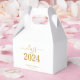 Fourniture élégante et élégante de fête de graduation personnalisée! Célébrez la réussite du diplômé en style avec ce ballotin branché. Design dispose "Class of 2024" en police or sur un arrière - plan blanc propre. Personnalisez ce produit en ajoutant le nom et le nom de l'école. Le bon maintien de la graduation. Facile à customiser. Félicitation !