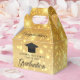 Élégant faux or scintillant boîte de faveur pour un diplôme d'études secondaires ou collégiales avec votre photo senior personnalisée dans le centre. Personnalisez cette belle boîte avec votre classe de 2024 au centre et ajoutez votre nom et votre école.