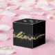 Arrière - plan noir étonnant avec des cercles d'effet bokeh et scintillant étincelant effet scimmer script écrit à la main mot "croire" dans une orientation horizontale. Un look classique, élégant et moderne pour les vacances.