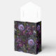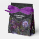 Gothique et humoristique, cette boîte de faveur de mariage formelle est parfaite pour un mariage gothique moderne sophistiqué. Le design floral moody présente des fleurs de violet et de lavande naturelles sur un arrière - plan en dentelle violet foncé et noir. Tous les détails du mariage peuvent être customisés pour répondre aux besoins de votre journée spéciale.