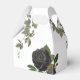 Un design gothique mariage de scénario Halloween avec des roses noirs et des vignes pendantes. Un design d'Halloween blanc qui utilise des fleurs botaniques noires et foncées avec des typographies de calligraphie vintages. Un design gothique élégant idéal pour les thèmes mariages d'Halloween. Un mariage rose noir unique design boîte de faveur. Des invitations de mariage et d'autres articles de papeterie sont également disponibles.