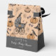 Merci personnalisé Halloween/Automne ballotin Baby shower, avec des chariots de bébé dessinés à la main, corbeaux noirs, casquettes sorciers, citrouilles, toiles d'araignée et de minuscules champignons contre un élégant arrière - plan orange clair. Imprimé à l'avant et à l'arrière. Cliquez simplement sur "Personnalisez ce modèle" pour insérer votre événement et votre date.