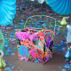 Si la couleur vous donne de l'énergie comme elle me fait, alors ces ballotins sont pour vous. Recouvert d'un graffiti numérique que j'ai conçu, il a des nuances de corail, orange, lavande, violet, turquoise, bleu nuit, blanc, jaune, vert citron, rose, noir et plus. Les couches de couleurs et la variabilité de l'opacité font de ballotins amusants.
