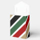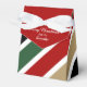Ce ballotin de vacances lumineux et coloré attirera l'attention à n'importe quelle fête de Noël ou de rassemblement ! Des rayures audacieuses dans les couleurs vert, rouge, blanc, or antique et noir en font un lieu remarquable. Le rabat avant rouge solide maintient votre texte personnalisé en blanc. Tout le texte peut être facilement customisé. Merci à MilachiDesigns sur etsy.com pour le motif utilisé dans ce design.