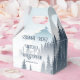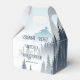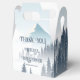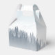 Une mystérieuse forêt grise accentuée d'un brouillard blanc romantique autour des pins et des montagnes dans l'arrière - plan font une grande boîte de mariage sauvage. La typographie présente tous les casquettes avec une belle signature fleurit sur les lettres de ce joli ballotin de réception.