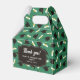 Graduation favor boxes printed with a green pattern of graduation caps and diplomas with a yellow ribbon. Customize the graduation themed favor boxes with the name of the graduate or the name of the celebration, and with the date.