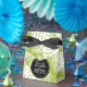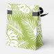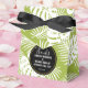 Mariage merci ballotins - avec un motif répétitif de grands feuilles de palme sur un arrière - plan vert olive. Moderne tendance et tropical. Un cercle noir avec une bordure intérieure dorée superposée avec vos détails personnalisés à l'intérieur.