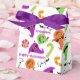 C'est un ballotin d'Halloween amusant avec des bonbons, des citrouilles et des casquettes de sorcière sur un arrière - plan blanc. Le ballotin peut être personnalisé en changeant le nom de la zone et le texte. Il peut être donné lors de fêtes ou d'événements d'entreprise.