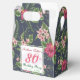 Design motif classique et élégant et transparent fait de fleurs hibiscus rouges et de feuilles sur arrière - plan sombre avec des étiquettes carré et ovale pour votre texte en face et une étiquette ovale en arrière avec Merci. Personnalisable ballotin de fête de 80e anniversaire. Vous pouvez facilement modifier le texte (police, couleur, taille et position), modifier la transparence des balises (copier ou supprimer l'une d'elles) et modifier la taille et la position de l'image arrière - plan en cliquant sur le bouton personnalisable ou personnalisable. Correspondance des plaques de papier d'anniversaire et d'autres produits.