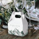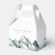 Faisant partie de la collection Highland de Redwood & Vine Design Co., cette boîte personnalisée pour mariage est une combinaison parfaite pour les mariages rustiques, extérieurs ou de destination. Le design présente des pics de montagne aquarelle peints à la main dans des tons verts doux, jumelés avec du texte personnalisable pour les noms et une date. Idéal pour emballer douceurs, petits cadeaux ou cadeaux à emporter, ce ballotin élégant ajoute une touche pittoresque et sophistiquée à votre célébration.
