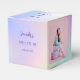 Arrière - plan holographique rose, violet, vert menthe. Personnalisez et ajoutez 2 photos, nom, âge et une date. Texte sur le couvercle : Merci pour venir !