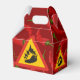 Triangle warning sign with a pepper and flame silhouette.