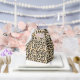 Cette boîte de cadeau de fête est présentée dans une impression léopard de safari moderne.