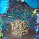 Cette boîte de cadeau de fête est présentée dans une impression léopard de safari moderne.