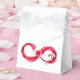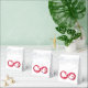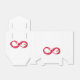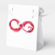 Infinity symbole of continuous stream of red pouring into glass glass glass on white background.