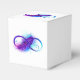 Infinity symbole with a beautiful feather painted in purple and blue bright colors on white background