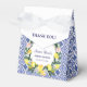 Cette boîte à cadeaux de fête de mariage design enchanteur, magnifique et frais citron vert comporte des citrons aquarelles vibrants avec des roses roses délicates, complétées par un motif de carreaux bleus italiens méditerranéens complexes avec une typographie en lettres bleues. Ces boîtes à cadeaux promettent d'apporter l'attrait du charme méditerranéen à votre fête de mariage. Texte facilement personnalisable et modifiable.