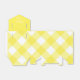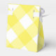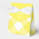 Motif en vichy jaune estival sur ballotins de tente avec texte "Merci" en option.