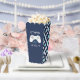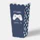 Conçu pour correspondre à nos invitations à la fête d'anniversaire Level Up et à nos accessoires, ce ballotin à thème de joueur rétro présente une illustration de contrôleur de jeu sur un arrière - plan bleu marine avec "[Nom] a atteint le niveau [âge]" en lettres de style numérique vintage.