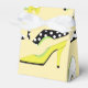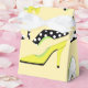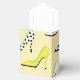 Vous cherchez une boîte à faveurs glamour ? Eh bien, la recherche est terminée. Cette boîte à faveurs présente des chaussures à talons hauts multicolores à la mode sur fond jaune. Certaines talons sont jaunes, d'autres blanches, et certaines avec des motifs à pois. Fait un excellent ajout à une douche de mariée, une fête d'anniversaire ou d'autres événements chics.