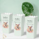 Ballotin avec une belle illustration représentant un cerf mignon. Entouré de roses roses et de fleurs roses.