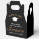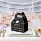 Cette boîte de faveur de la fête de la réunion du lycée personnalisée moderne comprend le nom du lycée pour les anciens élèves sur un arrière - plan noir pour un 10ème, 20ème ou 30ème anciens élèves. Élégant script or.