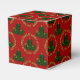 Merry and Bright, Green Christmas Candle-Carré Party Favor Box-Une grande chandelle à colonne éclairée et de cire goutte à goutte. La bougie est posée sur un plateau de bougies dorées, paré de feuilles saints et de baies rouges. Le texte décoratif en or tourne autour de la bougie et dit : Que votre Noël soit Joyeux et lumineux. Cette boîte a une bougie verte sur un arrière - plan rouge. Il est également disponible avec une bougie rouge sur un arrière - plan vert. Choisissez n'importe quel style de Zazzle dans les boîtes de faveur du parti.
